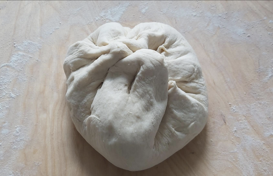 | After knocking back - bringing the edges into the middle to form the ball ready for increasing tension. |